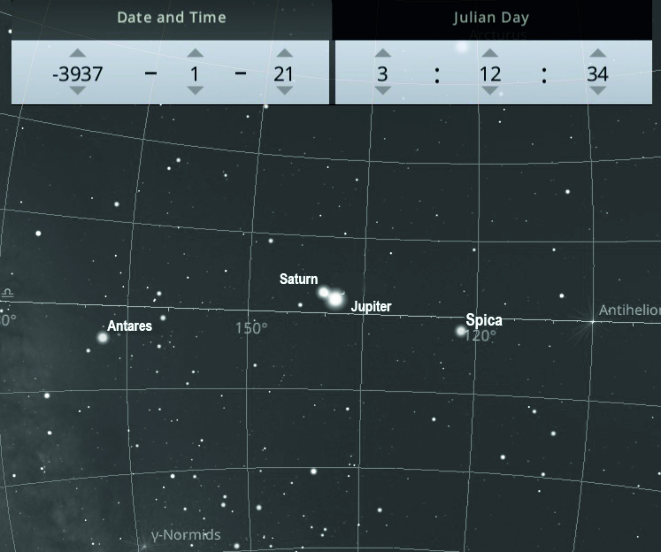 A conjunction of Saturn and Jupiter on 21 January 3937 BCE.